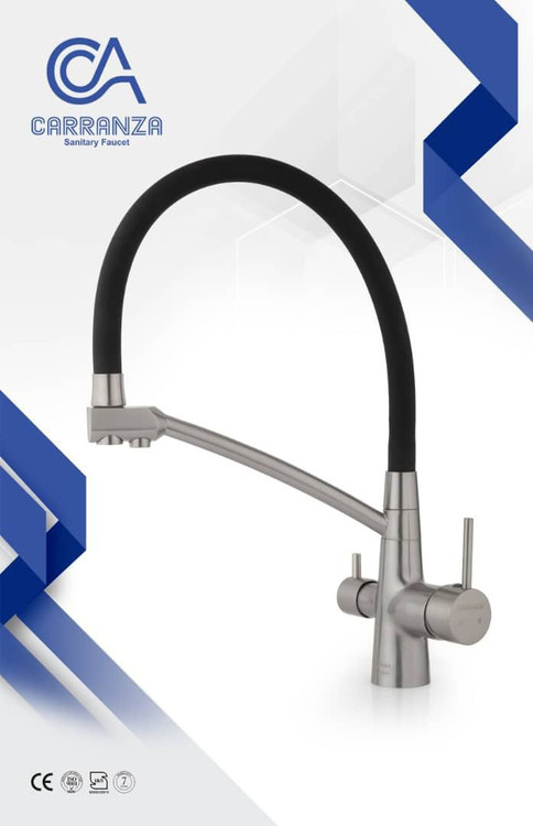 شیر ظرفشویی دو منظوره کارنزا مدل شاتل: با نصب این شیر شما دیگه نیازی به شیر تصفیه آب روی سینک ندارید که هارمونی و دیزاین آشپزخونه شما خراب شود ضمنا این شیر دارای شیلنگ از جنس سیلیکون میباشد که به شما امکان شستشو دور تا دور سینک را میدهد و کاربری فوق العاده ساده و کاربردی دارد این شیر با قیمت فوق العاده مناسب امکان خرید آسان رو برای شما فراهم میکند